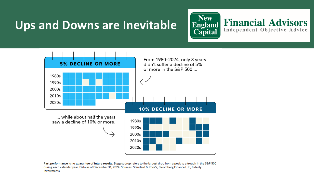 Please remember that past performance is no guarantee of future results. Different types of investments involve varying degrees of risk, and there can be no assurance that the future performance of any specific investment, investment strategy, or product (including the investments and/or investment strategies recommended or undertaken by New England Capital Financial Advisors, LLC [“NECFA”]), or any non-investment related content, made reference to directly or indirectly in this blog will be profitable, equal any corresponding indicated historical performance level(s), be suitable for your portfolio or individual situation, or prove successful. Due to various factors, including changing market conditions and/or applicable laws, the content may no longer be reflective of current opinions or positions. Moreover, you should not assume that any discussion or information contained in this blog serves as the receipt of, or as a substitute for, personalized investment advice from NECFA. To the extent that a reader has any questions regarding the applicability of any specific issue discussed above to his/her individual situation, he/she is encouraged to consult with the professional advisor of his/her choosing. NECFA is neither a law firm nor a certified public accounting firm and no portion of the blog content should be construed as legal or accounting advice. A copy of the NECFA’s current written disclosure Brochure discussing our advisory services and fees is available for review upon request or at www.newenglandcapital.com. Please Note: NECFA does not make any representations or warranties as to the accuracy, timeliness, suitability, completeness, or relevance of any information prepared by any unaffiliated third party, whether linked to NECFA’s web site or blog or incorporated herein, and takes no responsibility for any such content. All such information is provided solely for convenience purposes only and all users thereof should be guided accordingly. Please Remember: If you are a NECFA client, please contact NECFA, in writing, if there are any changes in your personal/financial situation or investment objectives for the purpose of reviewing/evaluating/revising our previous recommendations and/or services, or if you would like to impose, add, or to modify any reasonable restrictions to our investment advisory services. Unless, and until, you notify us, in writing, to the contrary, we shall continue to provide services as we do currently. Please Also Remember to advise us if you have not been receiving account statements (at least quarterly) from the account custodian.