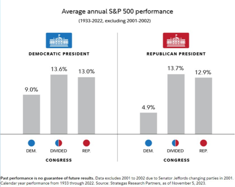 Politics can bring out strong emotions and biases, but you would be wise to tune out the noise and focus on the long term. That’s because elections have, historically speaking, made almost no difference when it comes to long-term investment returns.
